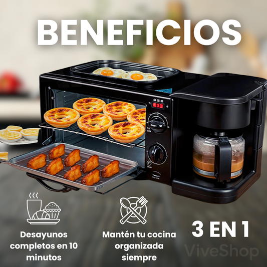 Horno 3 en 1® – Cocina sin desorden y prepara tu desayuno completo en solo 10 minutos