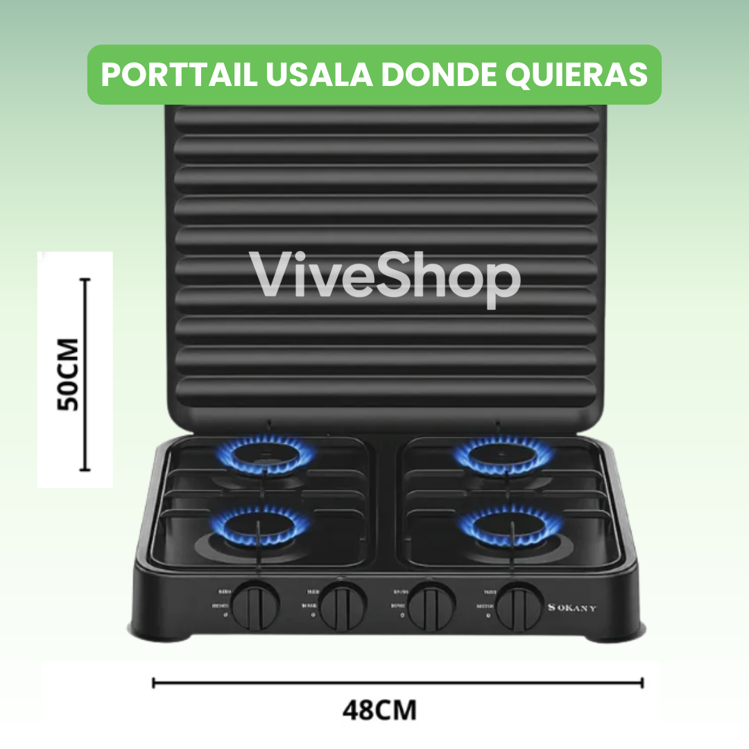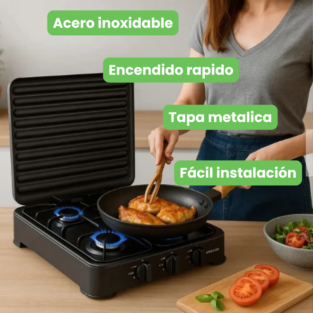Estufa portátil a gas – 2, 3 o 4 puestos – color negra – con tapa protectora